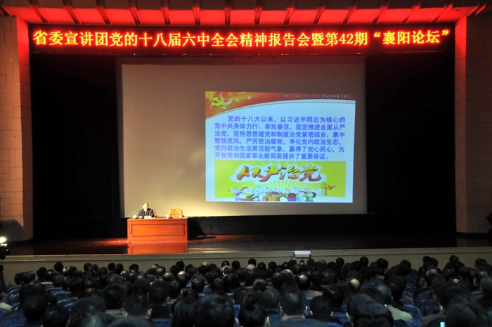 11月11日下午,按照省委的统一安排和部署,省委宣讲团十八届六中全会精神报告会在襄阳剧院举行。省委宣讲团成员、省纪委副书记陈洪波作宣讲报告,报告会由襄阳市委副书记、市长秦军主持。