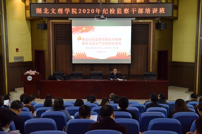 学校纪委书记、监察专员宋双伟应邀为培训班作了第一讲。宋双伟首先介绍了“省属高校纪检监察体制机制改革”情况,她指出,根据省纪委监委有关文件精神,学校制定《湖北文理学院纪检监察体制改革实施方案》,扎实推进纪检监察体制改革。省监委驻湖北文理学院监察专员办公室正式挂牌,与纪委合署办公。随着纪检监察体制改革的实施,“五项监督”、“三为主”、“三报告”落实落地,实现分工合作,程序性更强,学校纪检监察体制和工作机制进一步健全和完善。宋双伟指出,深入推进全面从严治党,纪委、监察专员办公室必须切实履行好监督这个第一职责,强化政治监督,做实日常监督,推动学校党风廉政建设工作高质量发展。